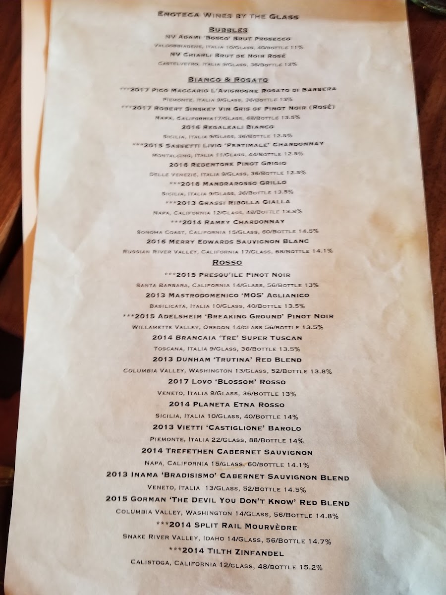 Welcome to Enoteca, a culinary gem nestled in the heart of Ketchum, Idaho. This inviting eatery offers a meticulously crafted menu that showcases the rich flavors of Italian cuisine, with a twist. Notable dishes include the tantalizing Sexy Rita and the spicy Diavola pizzas, each prepared with fresh, high-quality ingredients. Indulge in nightly specials like the Pan Seared King Salmon and mouthwatering Sicilian Chicken Leg, promising a memorable dining experience.